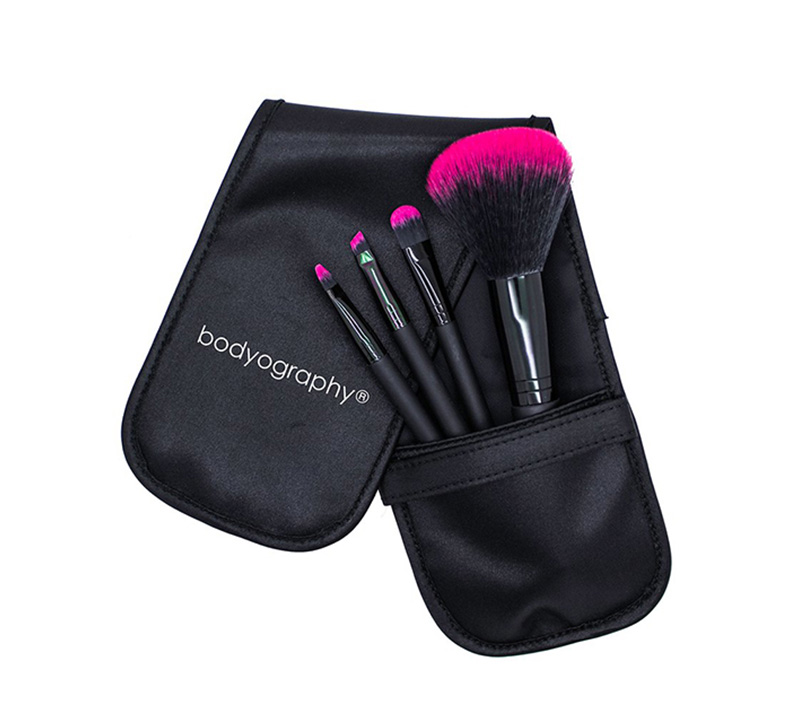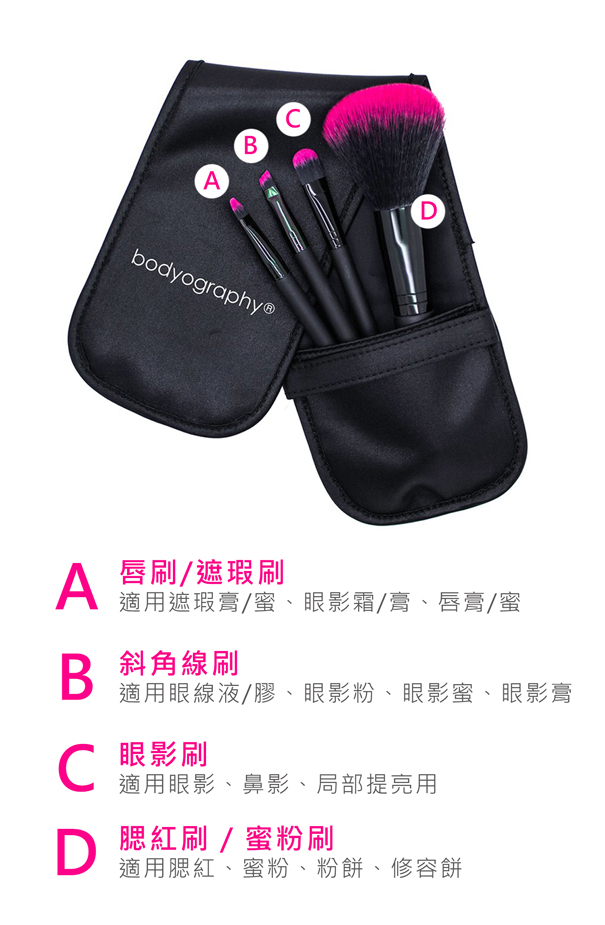 套組包括4支專業彩妝刷具 (合成尼龍毛) + 專用攜帶型掀蓋刷具包: