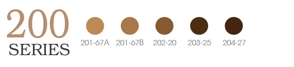 200系列 基因底色帶黃綠(Olive),由淺黃綠至深黃綠,適合較深偏黃咖色皮膚。(共5色)